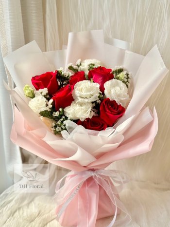 材質(料)說明: 進口紅玫瑰,白桔梗,深山櫻,